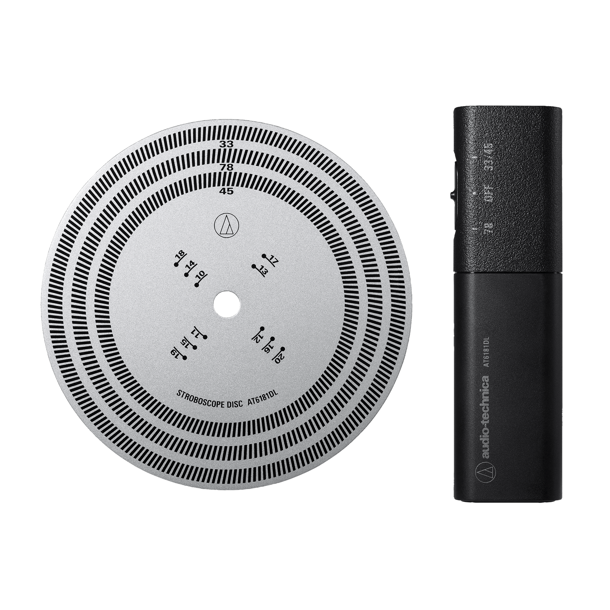 The AT6181DL kit includes a stroboscope disc along with a quartz strobe light, giving you everything you need to precisely check your turntable's rotation speed. The light’s yellow LED provides a clear, accurate reading of the stroboscope’s high-contrast markings for 33-1/3, 45 and 78 RPM speeds. Stroboscope disc also includes an overhang guide.